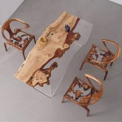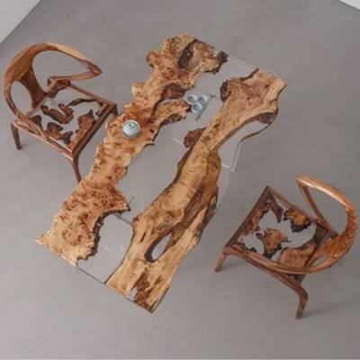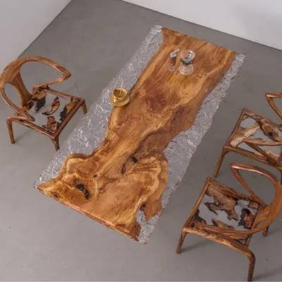 Camphor Wood:This camphor wood and resin live-edge table artfully combines the natural insect-repellent properties of aromatic camphor wood with the modern allure of cured epoxy. The wood's warm amber hues and interlocking grain patterns, enhanced by resin's glossy transparency or subtle tints, create a striking balance of organic texture and contemporary elegance. Resin stabilizes the wood's natural knots while preserving its durability and signature camphor aroma. Handcrafted to perfection, it serves as both a functional surface and a sustainable statement piece for nature-inspired interiors.