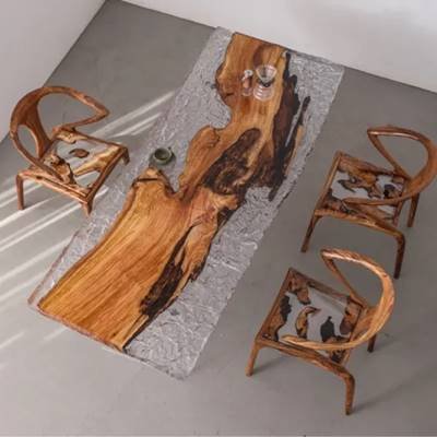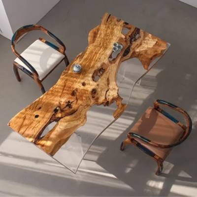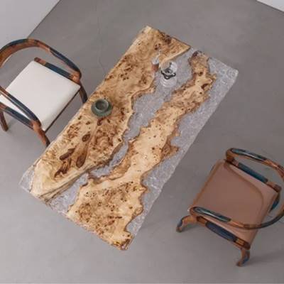 Olive Wood:This olive wood and resin live-edge table seamlessly blends Mediterranean heritage with modern design. Aged olive wood's swirling amber grains, framed by crystal-clear or tinted epoxy, highlight nature’s artistry. The resin stabilizes natural imperfections while enhancing durability, preserving the wood’s rich texture. Hand-finished to satin smoothness, it’s a functional sculpture for refined spaces—where tradition meets innovation.
