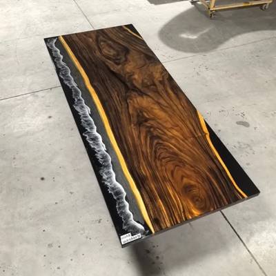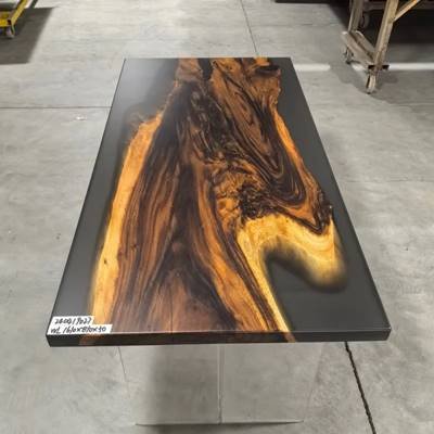 Black Walnut:Crafted from premium North American black walnut, each slab showcases bold natural grain patterns. The hand-poured translucent epoxy resin mimics flowing rivers, contrasting organic wood textures with modern artistry. Every piece is kiln-dried and sealed with industrial-grade coatings, seamlessly blending artistic beauty with lasting functionality.
