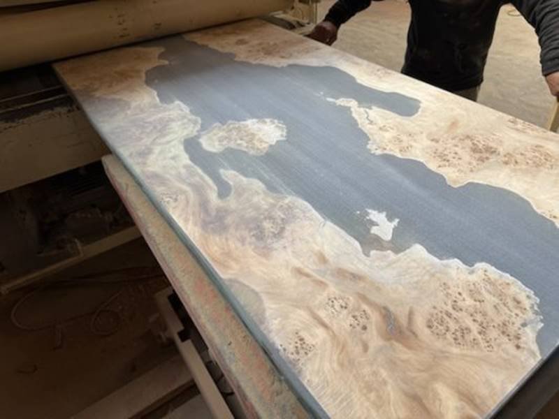 1. Material Selection & Wood Preparation:Choose high-quality French poplar wood slabs with natural cracks or voids. Sand the surface to remove bark and debris, then stabilize the wood by drying it to 8-10% moisture content.