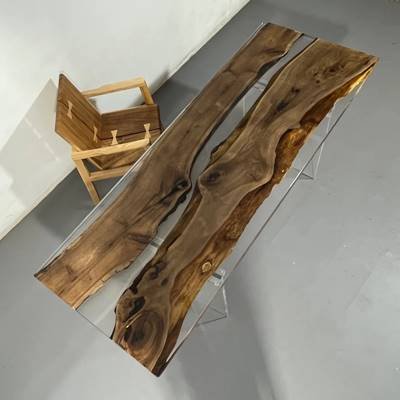 Black Walnut:Crafted from premium North American black walnut, each slab showcases bold natural grain patterns. The hand-poured translucent epoxy resin mimics flowing rivers, contrasting organic wood textures with modern artistry. Every piece is kiln-dried and sealed with industrial-grade coatings, seamlessly blending artistic beauty with lasting functionality.