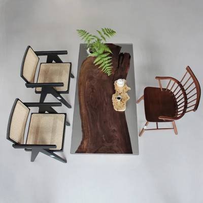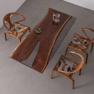 Suar Wood:Also known as Rain Tree, crafted from rare Suar Wood slabs and crystal-clear epoxy resin, this statement table showcases nature's artistry. The Peruvian Walnut features dramatic swirling grain patterns in warm chocolate hues, while the aerospace-grade epoxy resin creates durable, glass-like river accents that amplify light refraction. Hand-polished to a museum-quality finish, each piece preserves the wood's organic edges for rustic authenticity paired with modern structural integrity.