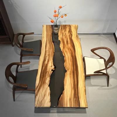 Olive Wood:This olive wood and resin live-edge table seamlessly blends Mediterranean heritage with modern design. Aged olive wood's swirling amber grains, framed by crystal-clear or tinted epoxy, highlight nature’s artistry. The resin stabilizes natural imperfections while enhancing durability, preserving the wood’s rich texture. Hand-finished to satin smoothness, it’s a functional sculpture for refined spaces—where tradition meets innovation.