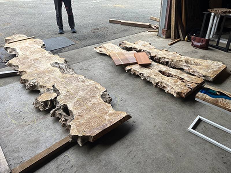 1. Material Selection & Wood Preparation:Choose high-quality French poplar wood slabs with natural cracks or voids. Sand the surface to remove bark and debris, then stabilize the wood by drying it to 8-10% moisture content.